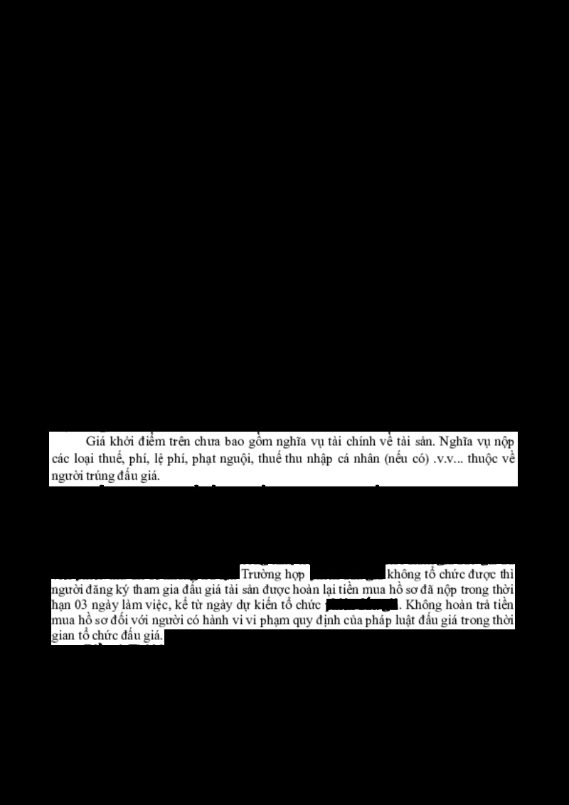 Giá khởi điểm trên chưa bao gồm nghĩa vụ tài chính về tài sản. Nghĩa vụ nộp các loại thuế, phí, lệ phí, phạt nguội, thuế thu nhập cá nhân (nếu có) .v.v... thuộc về người trúng đấu giá.
