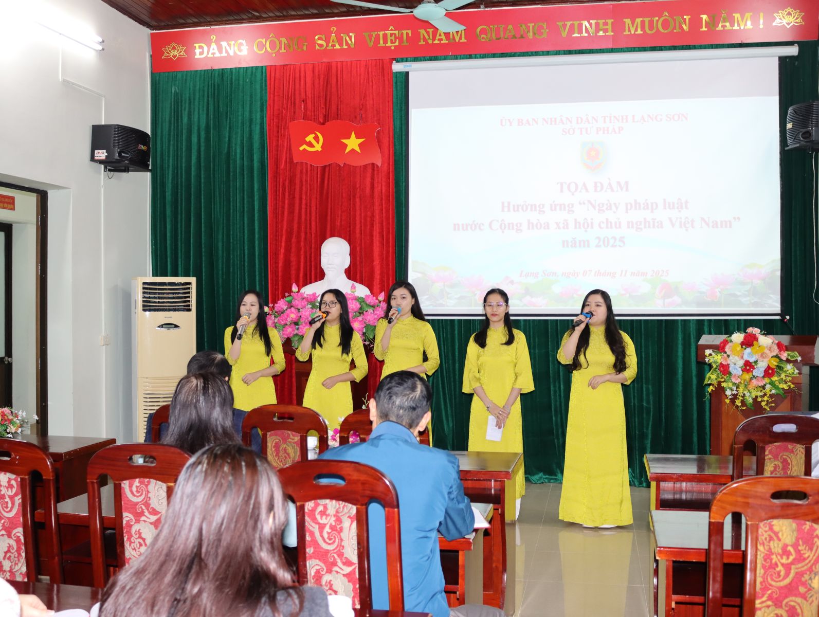 Hòa trong không khí thi đua sôi nổi của cả nước hướng về Ngày Pháp luật nước Cộng hòa xã hội chủ nghĩa Việt Nam (09/11) - ngày hội chính trị - pháp lý của toàn dân. Sáng ngày 07/11/2025, Sở Tư pháp tổ chức Tọa đàm hưởng ứng “Ngày Pháp luật Nước cộng hòa xã hội chủ nghĩa Việt Nam năm 2025”, tham dự buổi Tọa đàm có đồng chí Hoàng Văn Hoàn, Phó Giám đốc Sở chủ trì và toàn thể công chức, viên chức, người lao động của Sở Tư pháp.