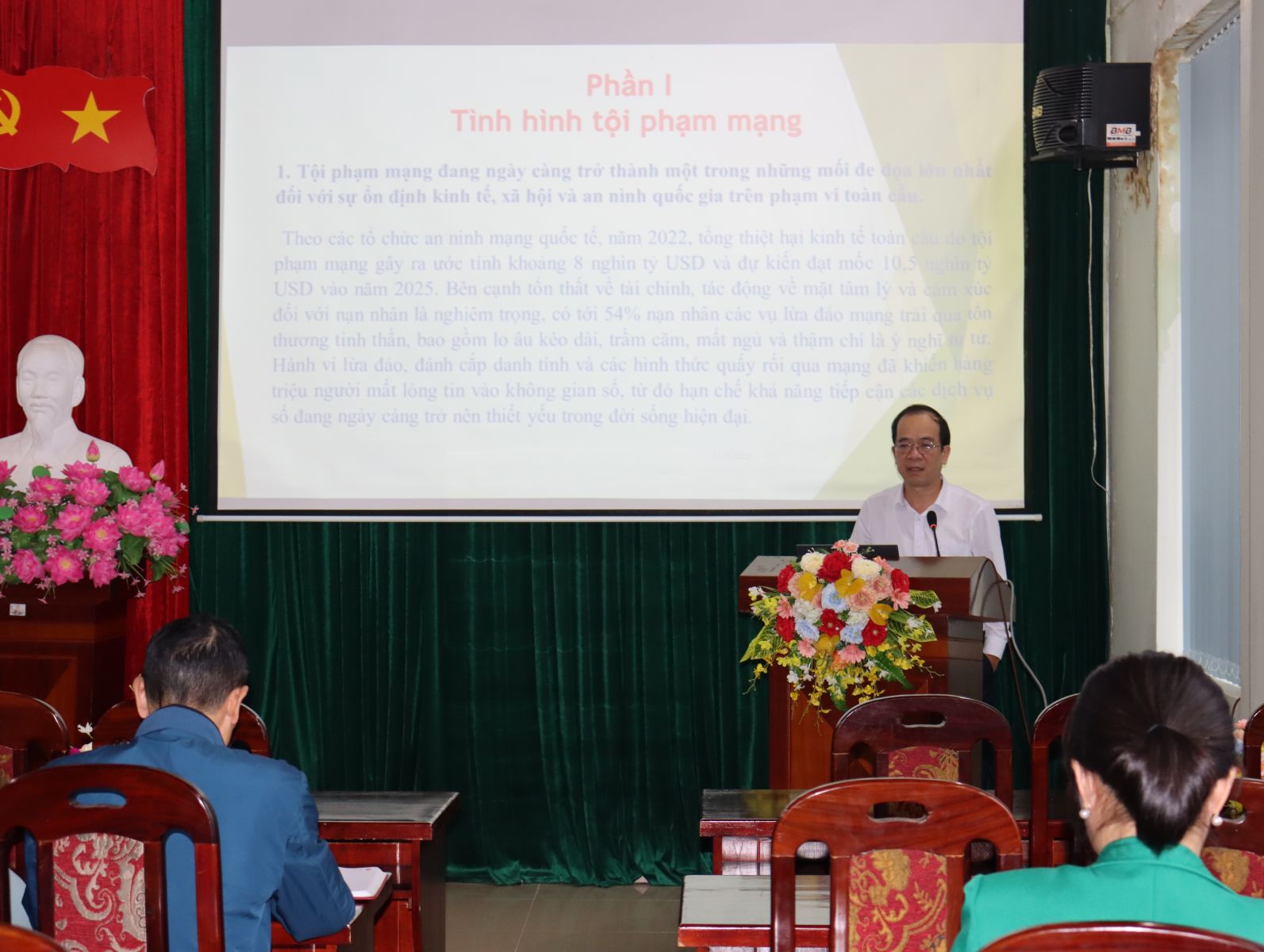 Tại buổi Tọa đàm, đồng chí Dương Công Luyện, Báo cáo viên pháp luật tỉnh, Trưởng phòng Nghiệp vụ II đã triển khai Chuyên đề: tuyên truyền phòng chống tội phạm sử dụng công nghệ cao; tình hình, thủ đoạn hoạt động của tội phạm công nghệ cao trong thời gian gần đây. Công tác tuyên truyền, phổ biến pháp luật về phòng, chống tội phạm sử dụng công nghệ cao có ý nghĩa đặc biệt quan trọng trong bối cảnh hiện nay, khi không gian mạng vừa là cơ hội phát triển, vừa tiềm ẩn nhiều rủi ro. Vì vậy cần nâng cao nhận thức, trách nhiệm của toàn xã hội trong việc phòng ngừa, phát hiện, tố giác tội phạm công nghệ cao; đồng thời tăng cường kỹ năng số và ý thức tuân thủ pháp luật của công chức, viên chức, người lao động Sở Tư pháp trong quá trình sử dụng Internet và các nền tảng trực tuyến.