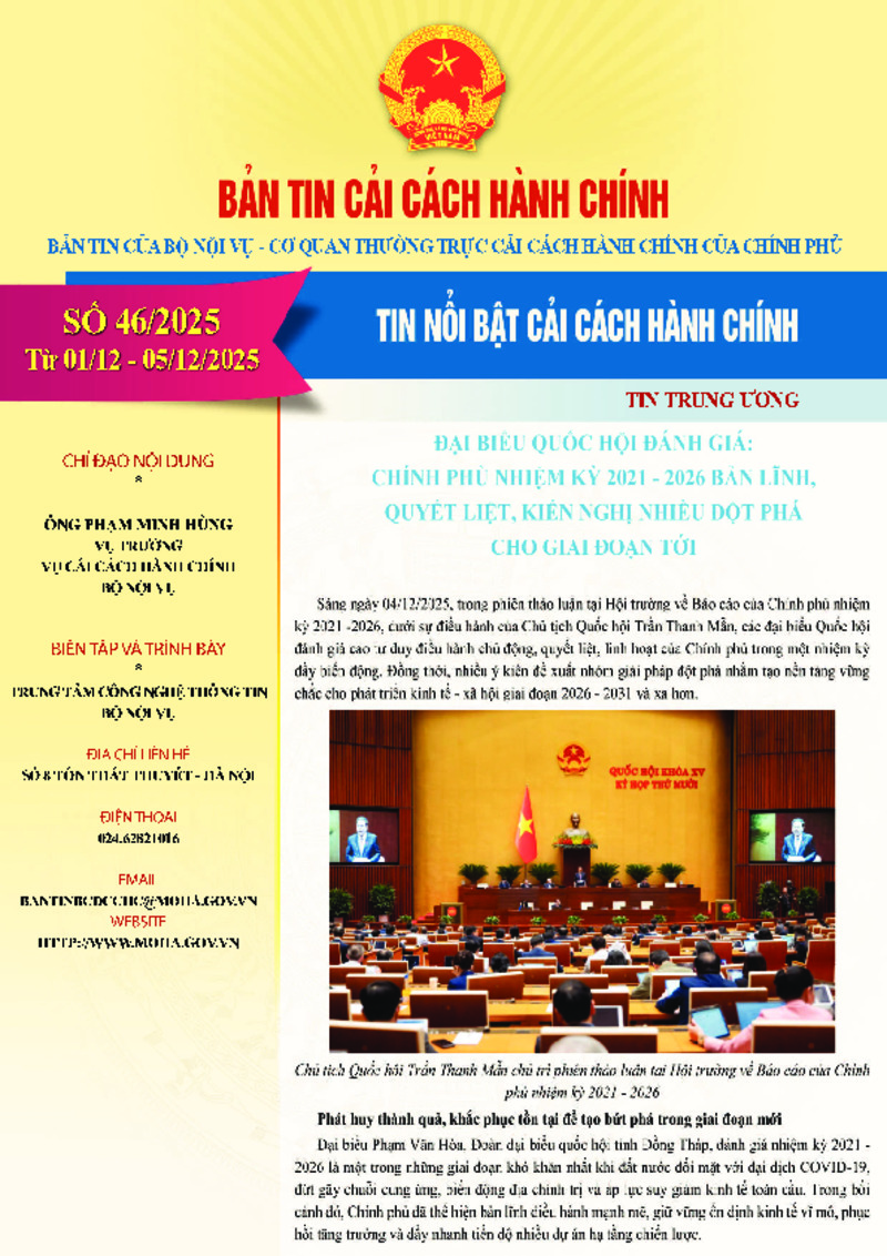 | Tiêu đề văn bản | Bản tin điện tử cải cách hành chính số 46/2025, từ ngày 01/12/2025 đến ngày 05/12/2025. | ||
