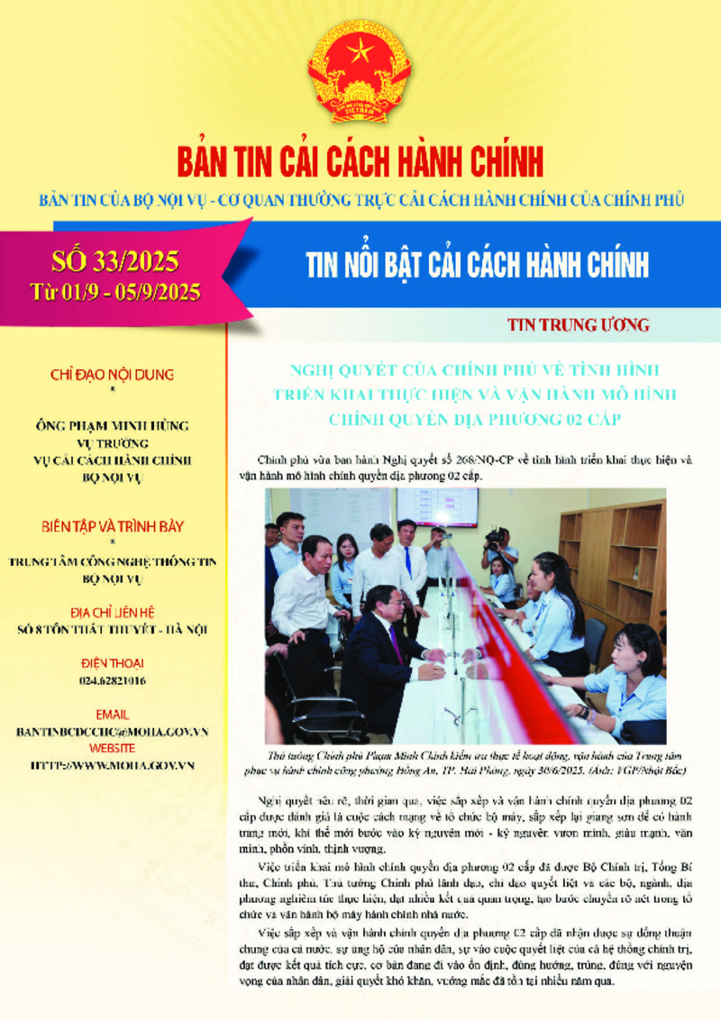 Tiêu đề văn bản | Bản tin điện tử cải cách hành chính số 33/2025, từ ngày 01/09/2025 đến ngày 05/09/2025. | ||