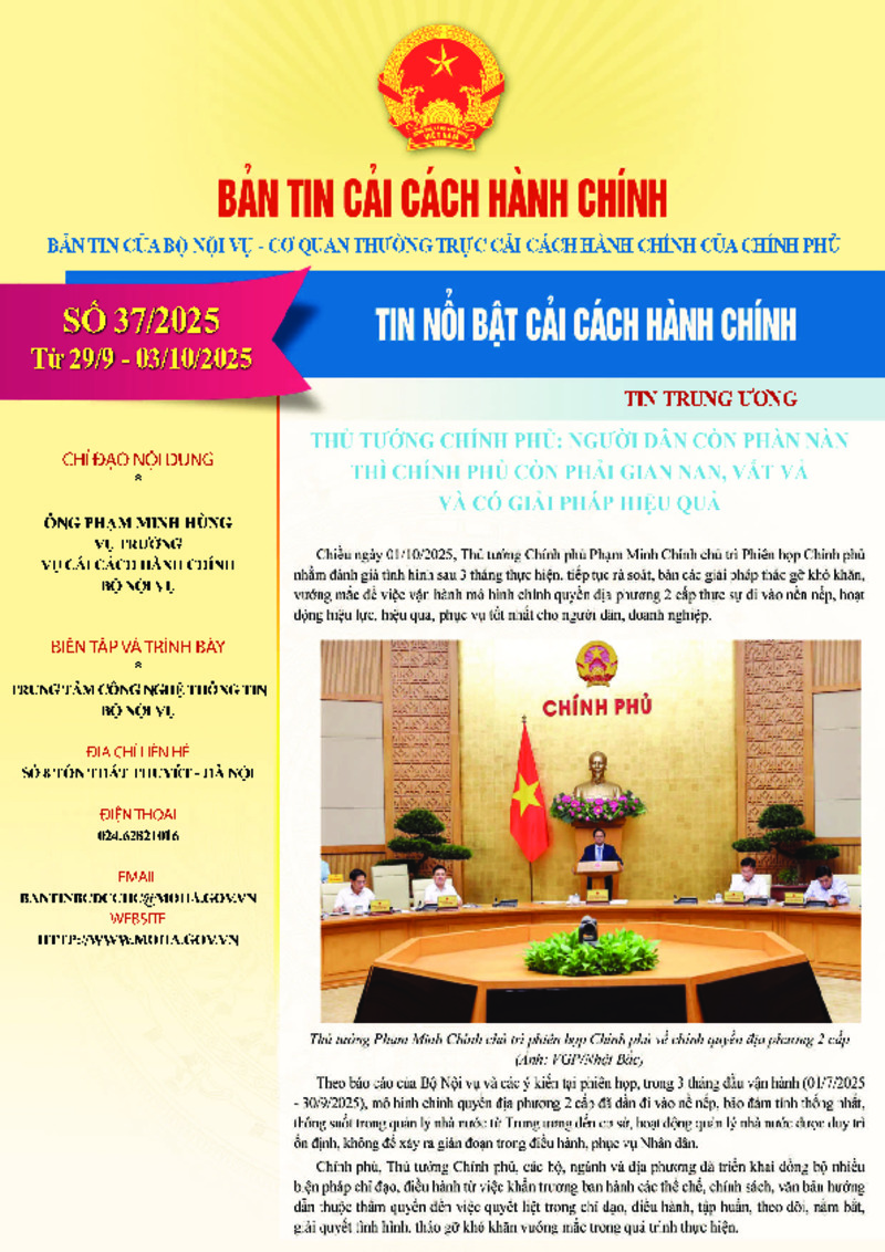 | Tiêu đề văn bản | Bản tin điện tử cải cách hành chính số 37/2025, từ ngày 29/9/2025 đến ngày 03/010/2025 | ||