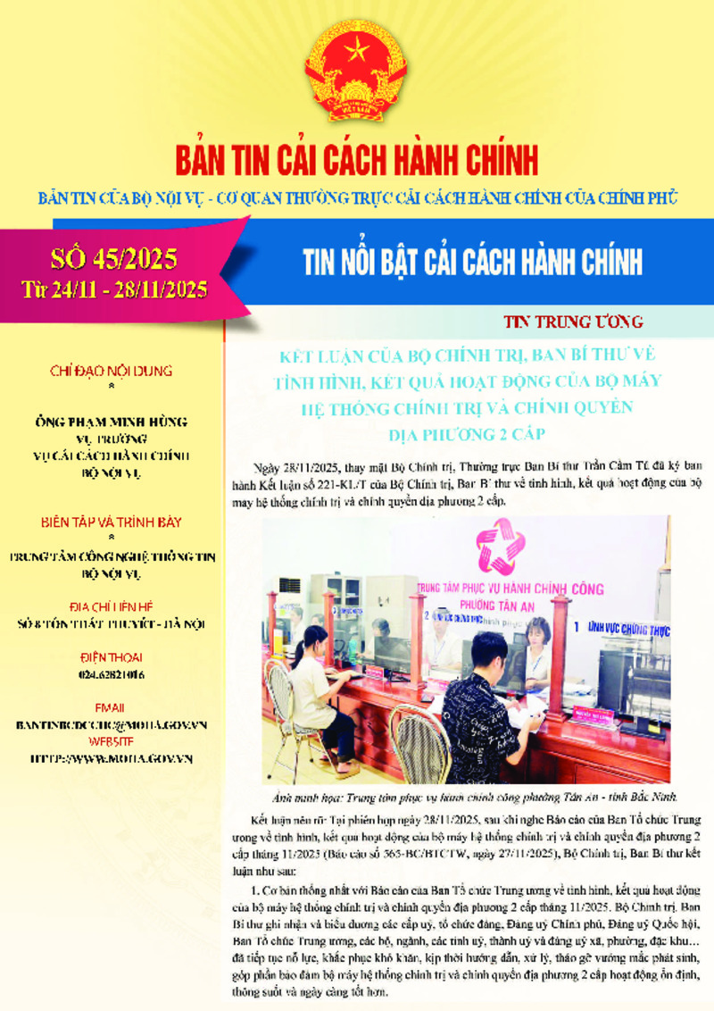 | Tiêu đề văn bản | Bản tin điện tử cải cách hành chính số 45/2025, từ ngày 24/11/2025 đến ngày 28/11/2025 | ||