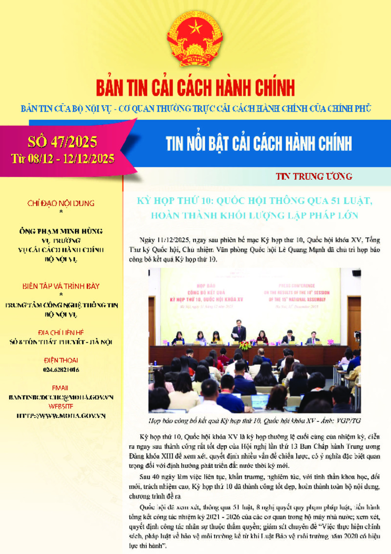 | Tiêu đề văn bản | Bản tin điện tử cải cách hành chính số 47/2025, từ ngày 08/12/2025 đến ngày 12/12/2025. | ||