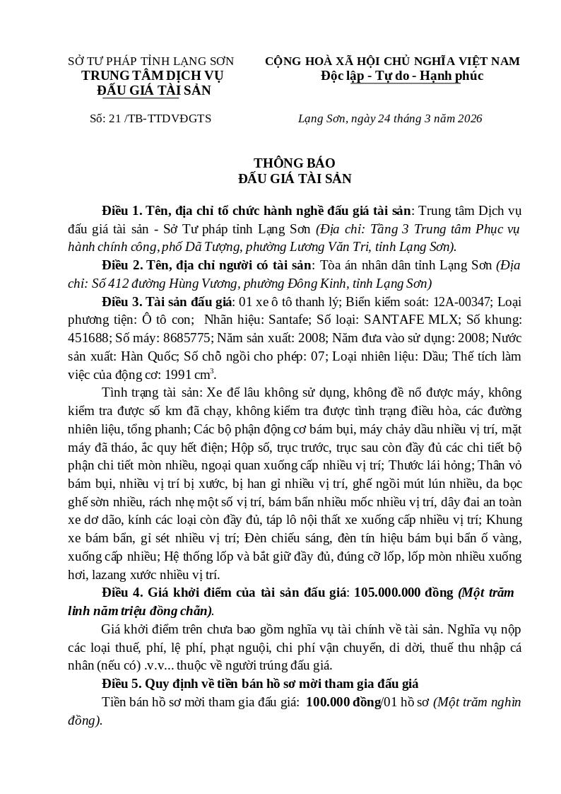 21/TB-TTDVĐGTS ngày 24/3/2026