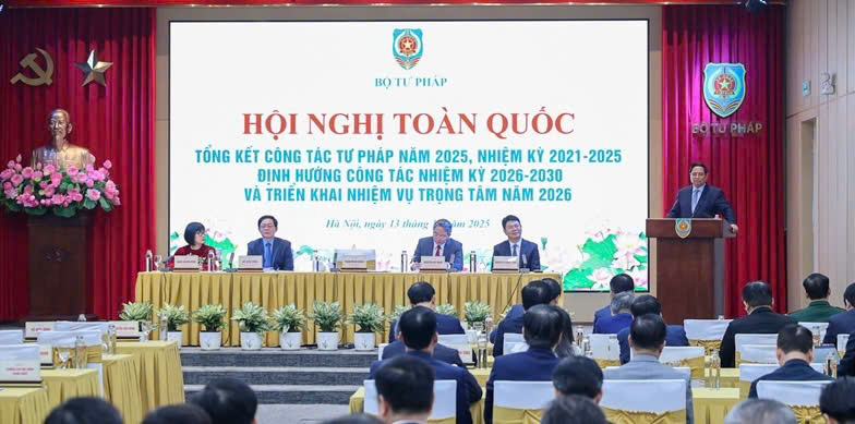 Sáng 13/12, Bộ Tư pháp tổ chức hội nghị trực tuyến toàn quốc tổng kết công tác tư pháp năm 2025, nhiệm kỳ 2021 - 2025; định hướng công tác nhiệm kỳ 2026 - 2030 và triển khai nhiệm vụ trọng tâm năm 2026. Hội nghị được kết nối trực tuyến đến 34 điểm cầu các tỉnh, thành phố. Đồng chí Phạm Minh Chính, Ủy viên Bộ Chính trị, Thủ tướng Chính phủ dự và chỉ đạo hội nghị.