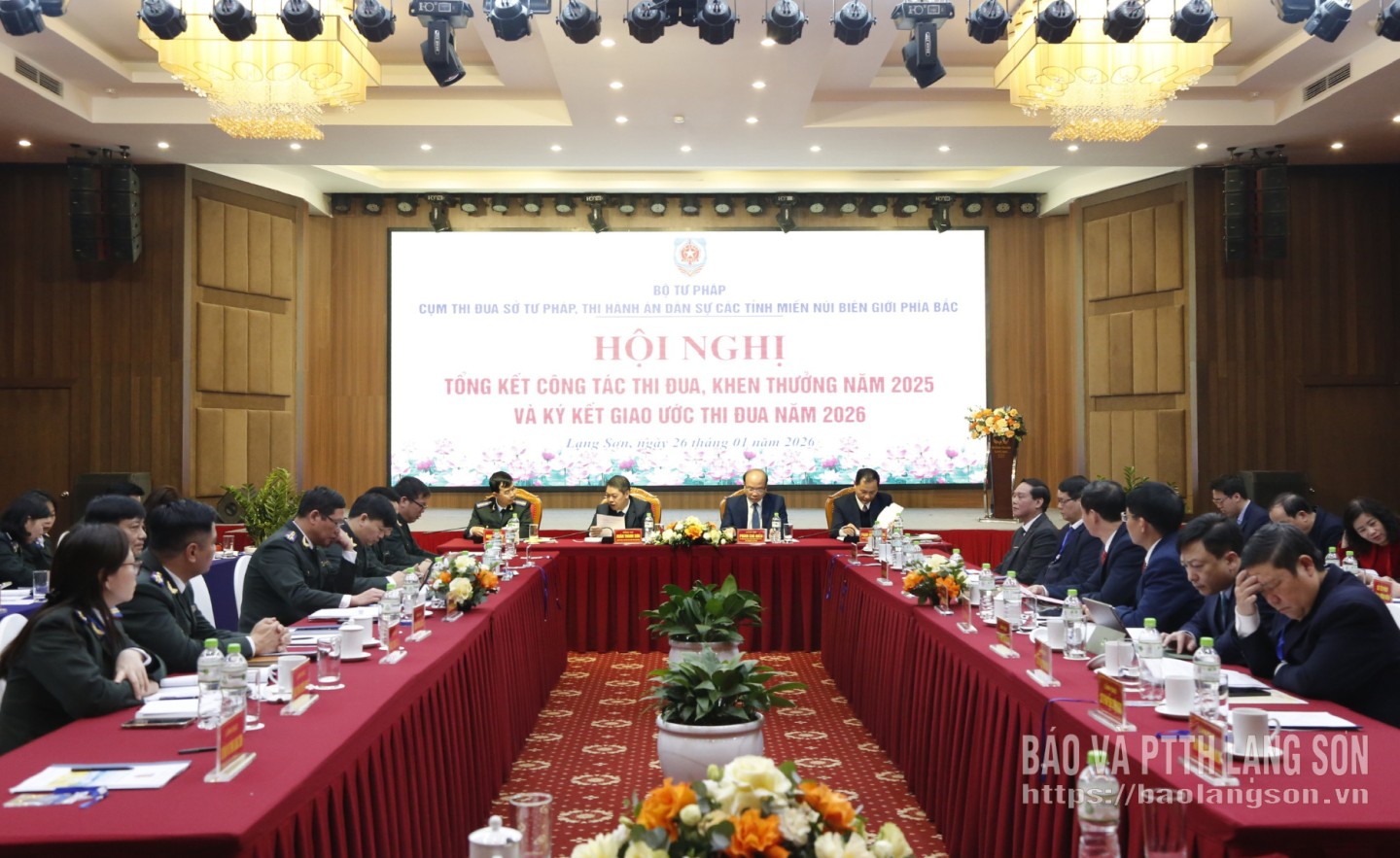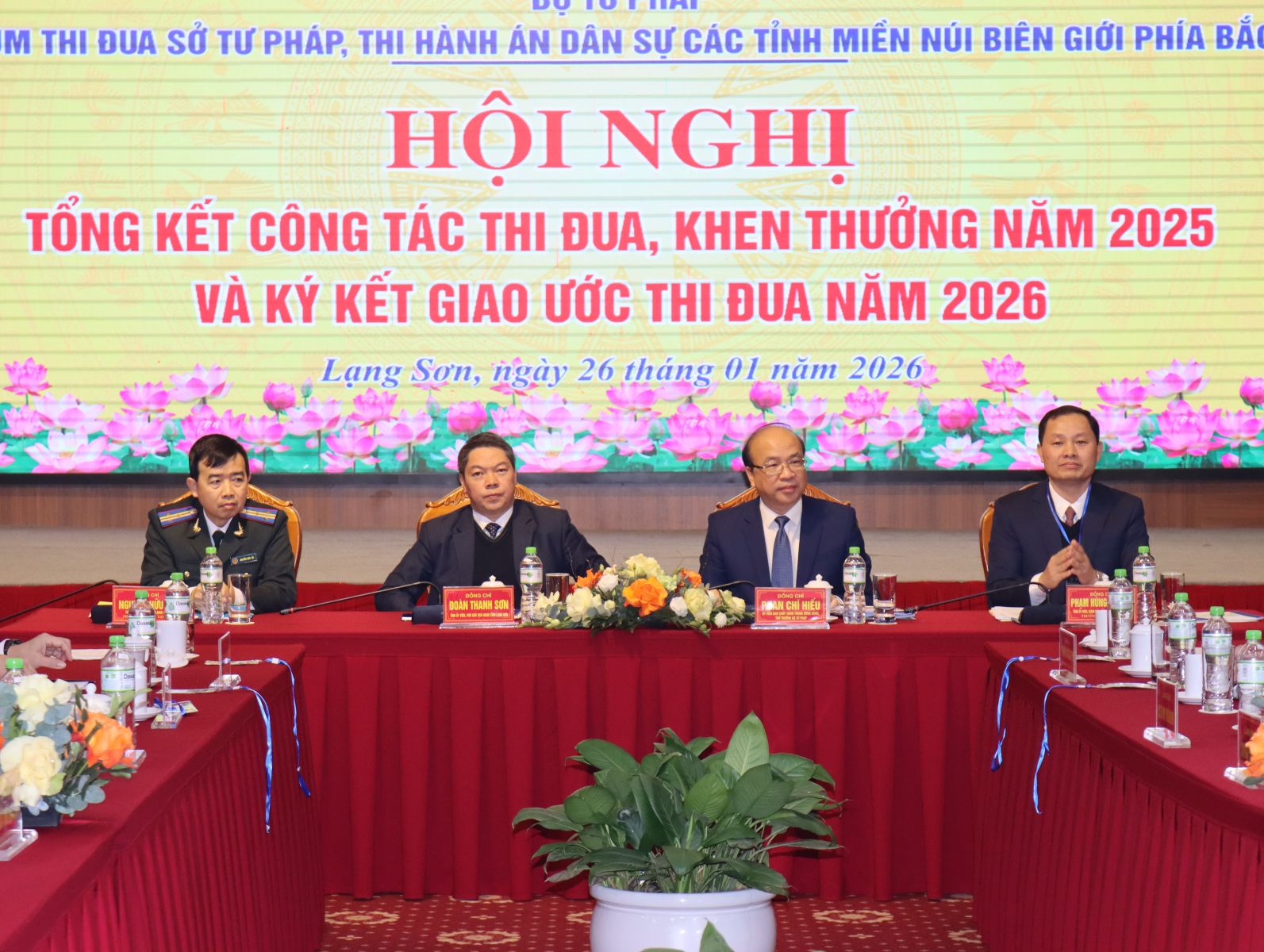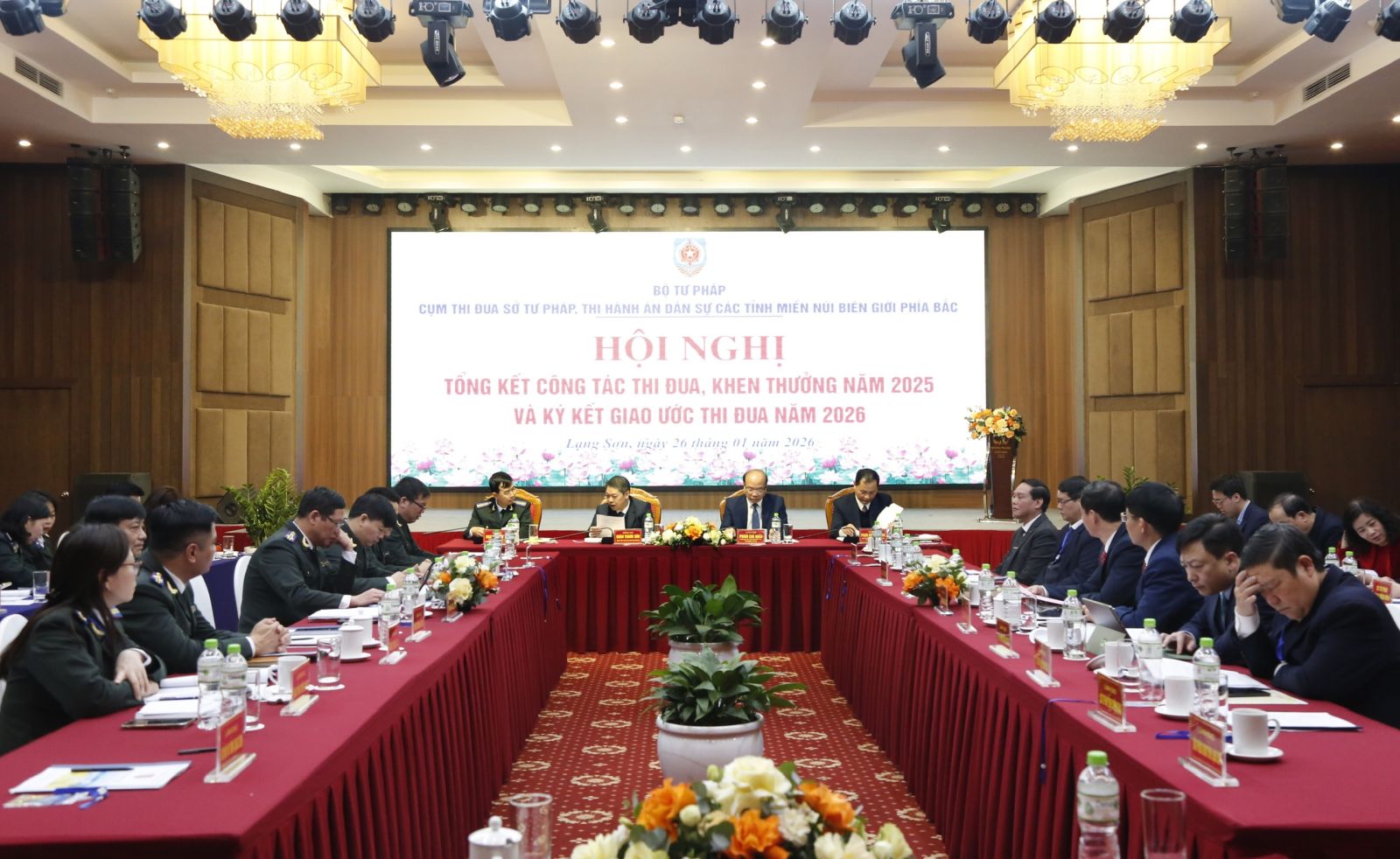 Hưởng ứng phong trào thi đua yêu nước do Bộ Tư pháp phát động, năm 2025 các Sở Tư pháp, THADS thuộc Cụm thi đua các tỉnh miền núi biên giới phía Bắc đã ra sức thi đua, quyết tâm phấn đấu hoàn thành toàn diện, vượt mức các chỉ tiêu, nhiệm vụ được giao, lập thành tích chào mừng kỷ niệm 80 năm ngày thành lập ngành Tư pháp Việt Nam và các ngày lễ lớn của đất nước, của địa phương. Nhằm đánh giá những kết quả đã đạt được trong năm 2025 của mỗi tập thể, cá nhân và suy tôn những tập thể có thành tích xuất sắc trong phong trào thi đua của Cụm thi đua, ngày 26/01/2026, tại tỉnh Lạng Sơn, Cụm thi đua Sở Tư pháp, Thi hành án dân sự các tỉnh miền núi biên giới phía Bắc tổ chức tổng kết công tác công tác thi đua, khen thưởng năm 2025 và ký kết giao ước thi đua 2026.