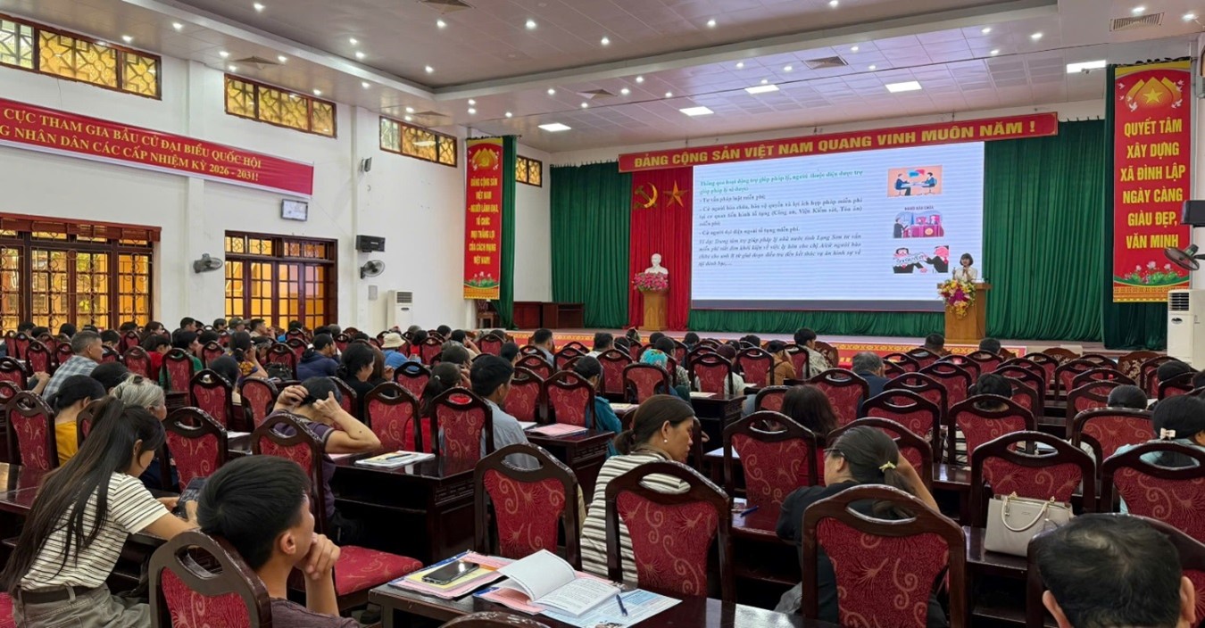 Thực hiện Quyết định số 3674/QĐ-BTP ngày 25/12/2025 của Bộ trưởng Bộ Tư pháp về việc ban hành Kế hoạch triển khai thực hiện chính sách trợ giúp pháp lý cho người khuyết tật thuộc diện được trợ giúp pháp lý năm 2026; Kế hoạch số 21/KH-UBND ngày 27/01/2026 của Ủy ban nhân dân tỉnh Lạng Sơn về thực hiện Chương trình trợ giúp người khuyết tật trên địa bàn tỉnh Lạng Sơn năm 2026; Kế hoạch số 28/KH-STP ngày 02/02/2026 của Sở Tư pháp về trợ giúp pháp lý cho người khuyết tật thuộc diện được trợ giúp pháp lý trên địa bàn tỉnh Lạng Sơn năm 2026. Hưởng ứng “Ngày Người khuyết tật Việt Nam” 18/4/2026, trong ngày 15/4/2026, Trung tâm Trợ giúp pháp lý nhà nước tỉnh Lạng Sơn phối hợp với Ủy ban nhân dân các xã Đình Lập, Châu Sơn, Kiên Mộc, Thái Bình tổ chức Hội nghị truyền thông về tiếp cận chính sách trợ giúp pháp lý cho người khuyết tật với sự tham gia của các đại biểu là người khuyết tật, đại diện gia đình có người khuyết tật và người dân trên địa bàn các xã.
