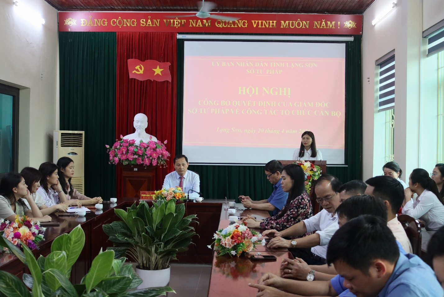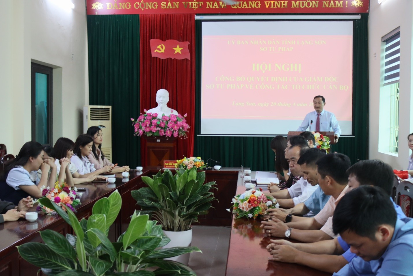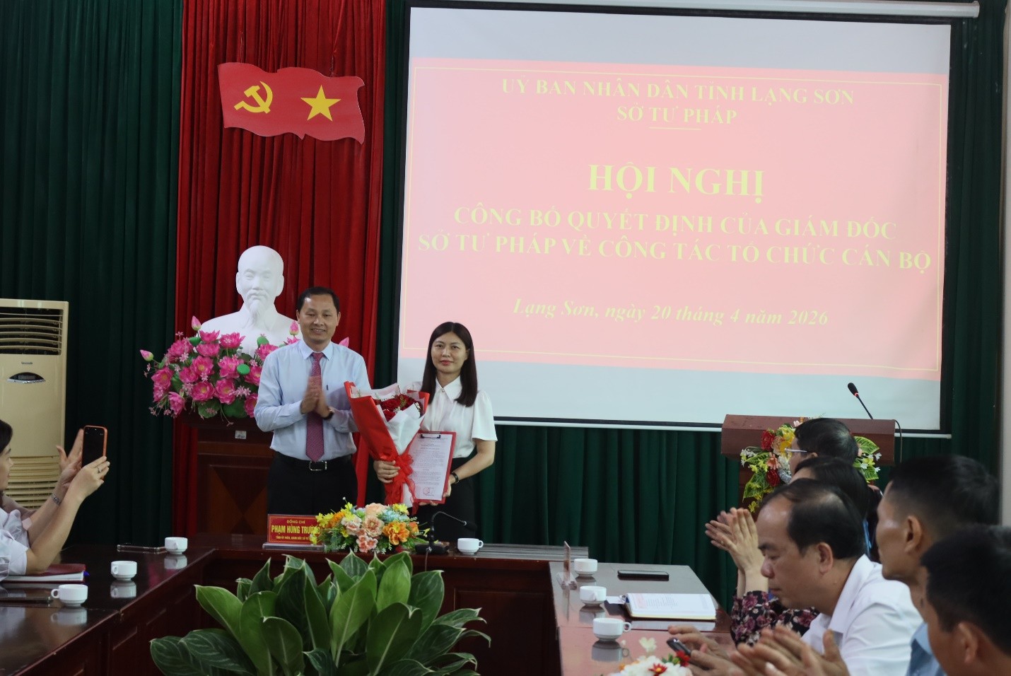 Chiều, ngày 20 tháng 4 năm 2026, Sở Tư pháp tỉnh Lạng Sơn tổ chức hội nghị công bố Quyết định của Giám đốc Sở về công tác tổ chức cán bộ.