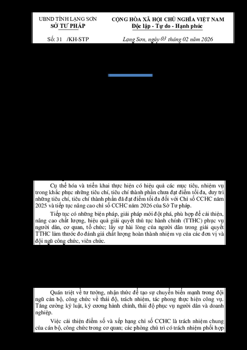 | Tiêu đề văn bản | Kế hoạch Khắc phục hạn chế, tồn tại trong triển khai nhiệm vụ CCHC năm 2025; nâng cao chất lượng, hiệu quả công tác CCHC năm 2026 của Sở Tư pháp | ||