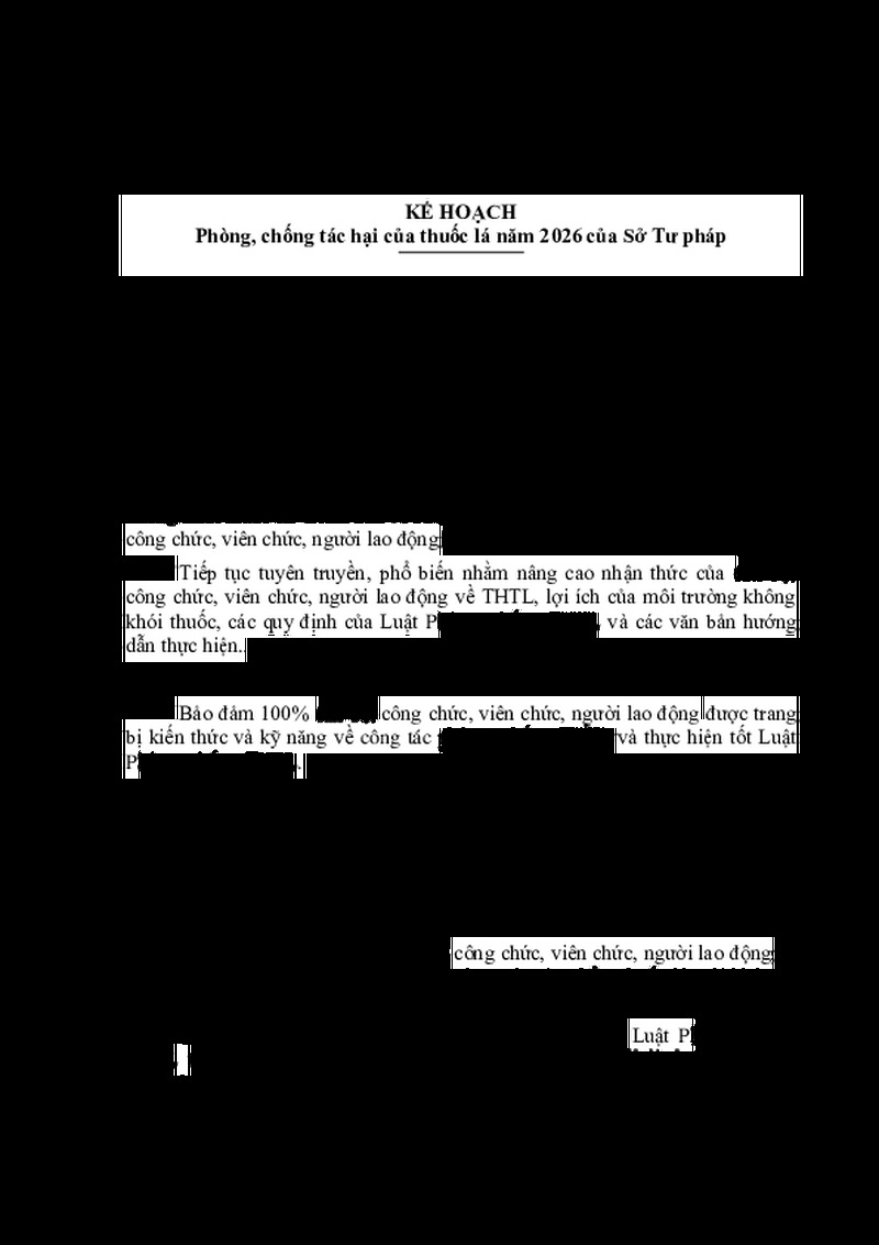 | Tiêu đề văn bản | Kế hoạch Phòng, chống tác hại của thuốc lá năm 2026 của Sở Tư pháp | ||