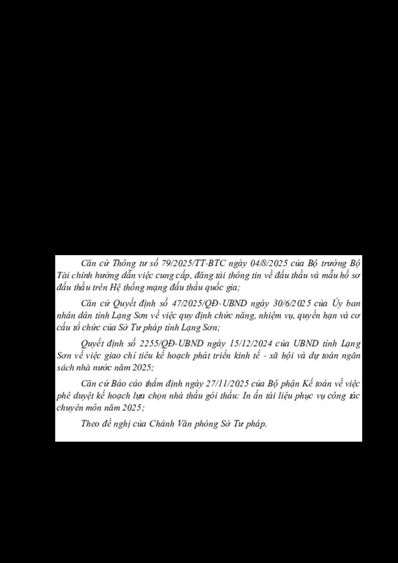 | Tiêu đề văn bản | Quyết định Về việc phê duyệt kế hoạch lựa chọn nhà thầu gói thầu: In ấn tài liệu phục vụ công tác chuyên môn năm 2025 | ||